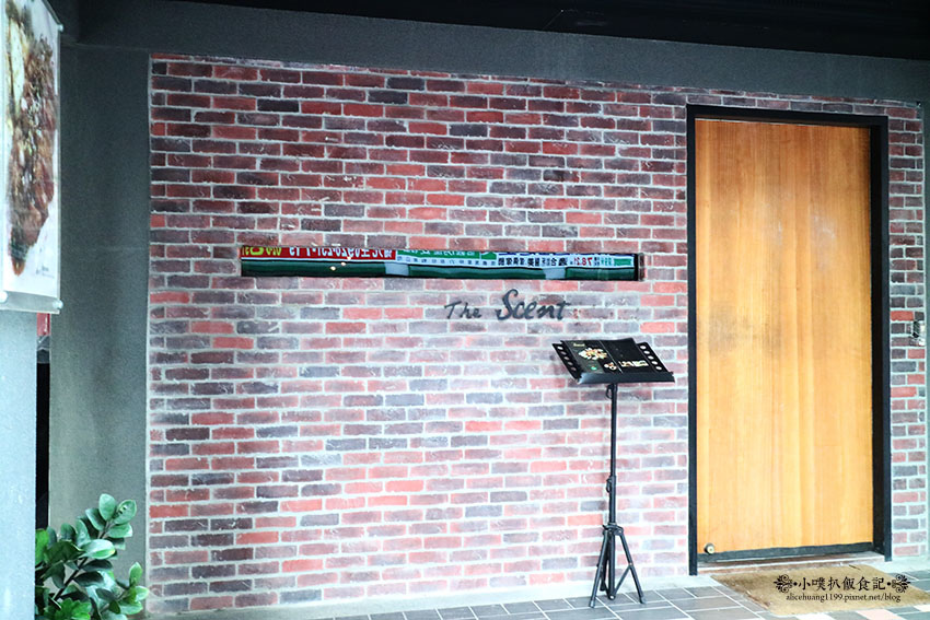 隱身於樂利路上的"The Scent餐酒館",低調及簡約的門面,未設置對外的窗戶,僅以磚牆及木質門為門面,匆匆走過的人們,可能很容易忽略它