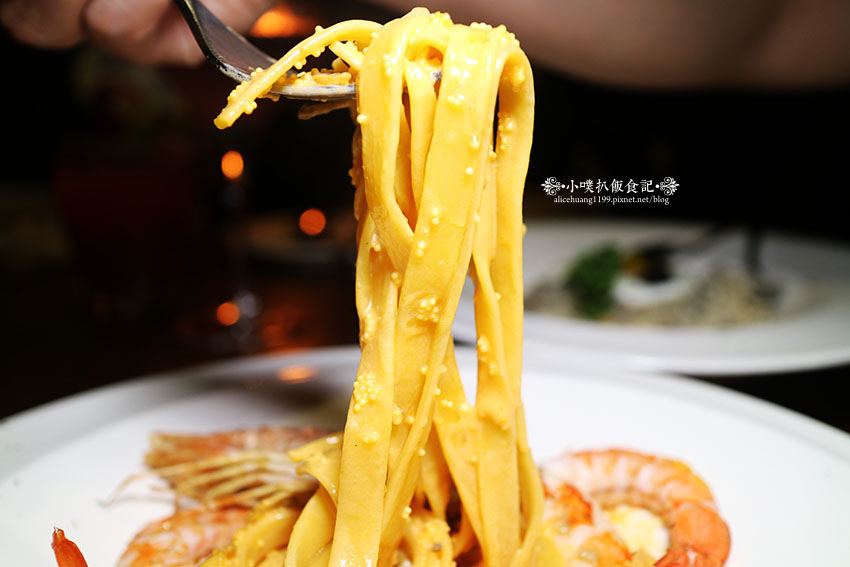 麵體採用義大利"義寬扁麵",麵體也是保有麵心,以道地義大利作法烹飪,麵體有適度的嚼勁,巴附滿滿的海膽醬汁及魚卵,感覺新鮮美味,呼之欲出的鮮度,讓人忍不住馬上品嚐!!!