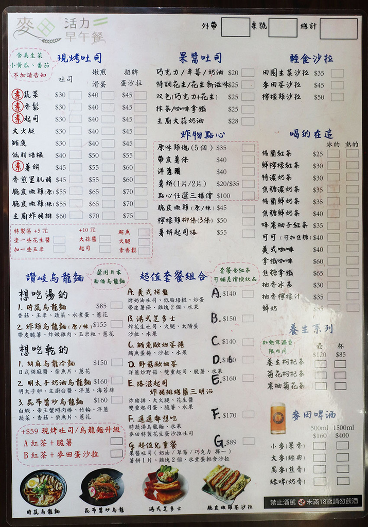 另外,果醬吐司、炸物點心、輕食沙拉、讚岐烏龍麵(湯、乾)、超值套餐組合...等,可選擇