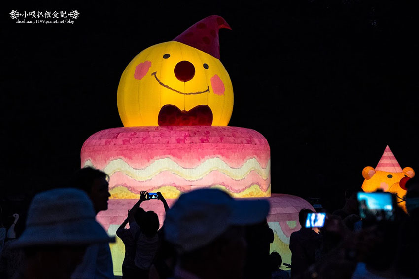 今年的向月亮許願,呈現 與 2019年相同,維持15公尺高,一個超大粉紅療癒的大蛋糕,上面的許願月亮,旁邊的小兔子、小熊,簡直一整個萌哒哒