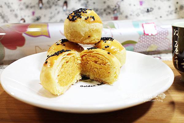 人氣商品蛋黃酥,外層酥香好吃,內層豆沙泥綿密可口,送禮或自己品嘗都適合