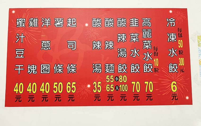 店內只販賣高麗菜及韭菜兩種口味水餃,而且一顆水餃才$7元,冷凍水餃也才$6元,平價、超值又CP值高,大家絕不可錯過^^![]()